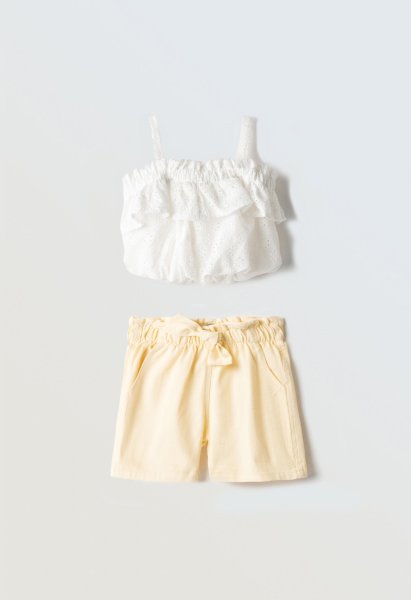 Παιδικό σετ σορτς ΕΒΙΤΑ για κορίτσι από 1 έως 6 ετών. Μπλούζα σε λευκό χρώμα, σορτς σε κίτρινο χρώμα.