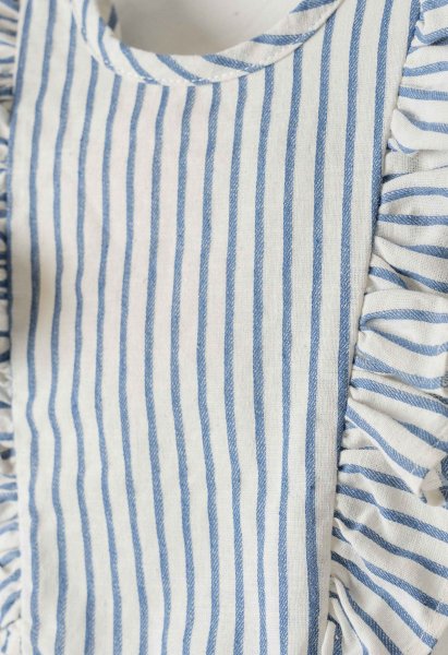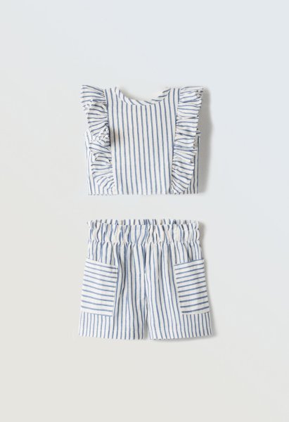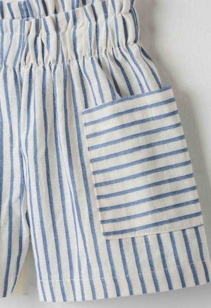 Παιδικό σετ σορτς ΕΒΙΤΑ για κορίτσι από 1 έως 6 ετών. Μπλούζα σε εκρού χρώμα με μπλε ριγέ τύπωμα. σορτς σε εκρού χρώμα με μπλε ριγέ τύπωμα.