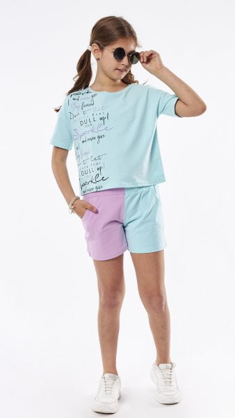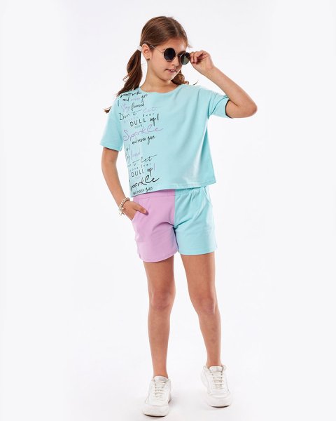 Παιδικό Σετ μπλούζα με σορτς Εβίτα για κορίτσι από 6 έως 16 ετών σε λιλά και γαλάζιο χρώμα με τύπωμα.
