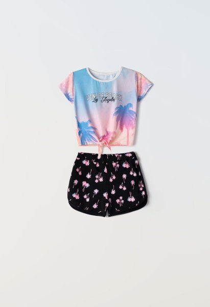 Παιδικό Σετ μπλούζα με σορτς Εβίτα για κορίτσι από 6 έως 16 ετών. Μπλούζα σε γαλάζιο χρώμα με εμπριμέ τύπωμα και μαύρο σορτς.