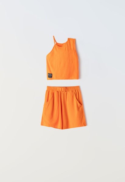 Παιδικό Σετ μπλούζα με σορτς Εβίτα για κορίτσι από 6 έως 16 ετών σε πορτοκαλί χρώμα.