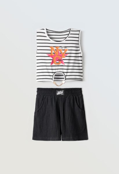 Παιδικό σετ σορτς ΕΒΙΤΑ για κορίτσι από 6 έως 16 ετών. Μπλούζα σε λευκό χρώμα με τύπωμα και μαύρο σορτς.