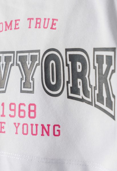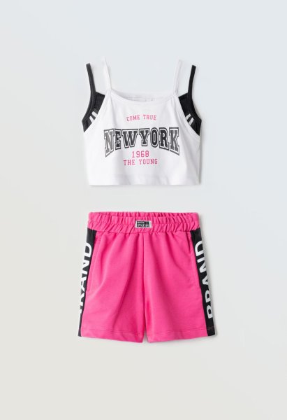 Παιδικό σετ σορτς ΕΒΙΤΑ για κορίτσι από 6 έως 16 ετών. Μπλούζα σε λευκό χρώμα με τύπωμα και φούξια σορτς.