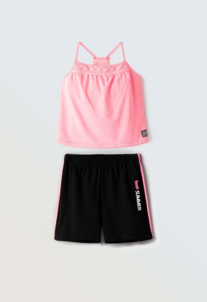 Παιδικό σετ σορτς ΕΒΙΤΑ για κορίτσι από 6 έως 16 ετών. Μπλούζα σε ροζ χρώμα και μαύρο σορτς.