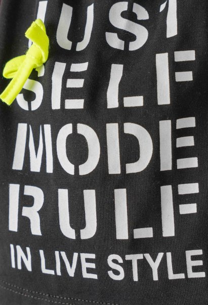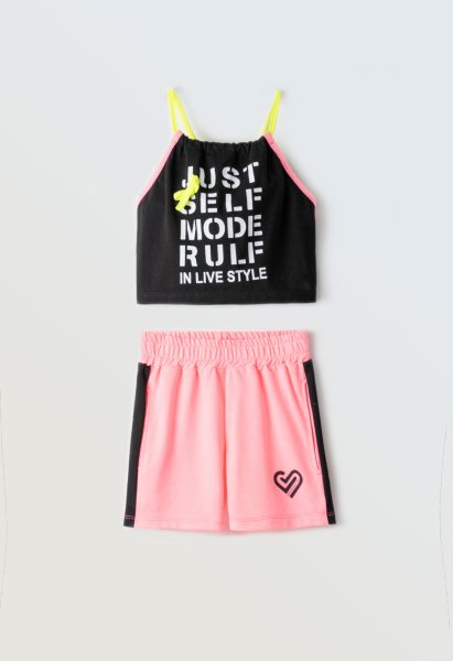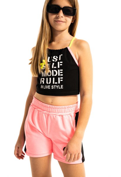 Παιδικό σετ σορτς ΕΒΙΤΑ για κορίτσι από 6 έως 16 ετών. Μπλούζα σε μαύρο χρώμα με τύπωμα και φούξια σορτς.