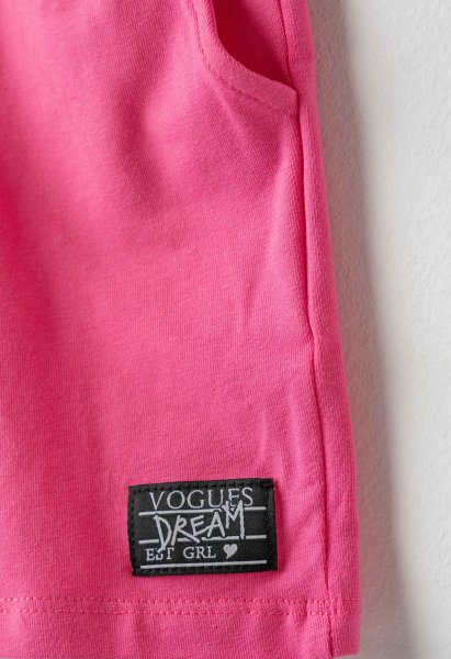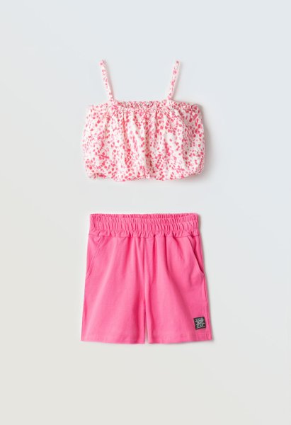 Παιδικό σετ σορτς ΕΒΙΤΑ για κορίτσι από 6 έως 16 ετών. Μπλούζα σε λευκό χρώμα με allover τύπωμα και φούξια σορτς.