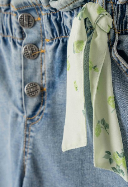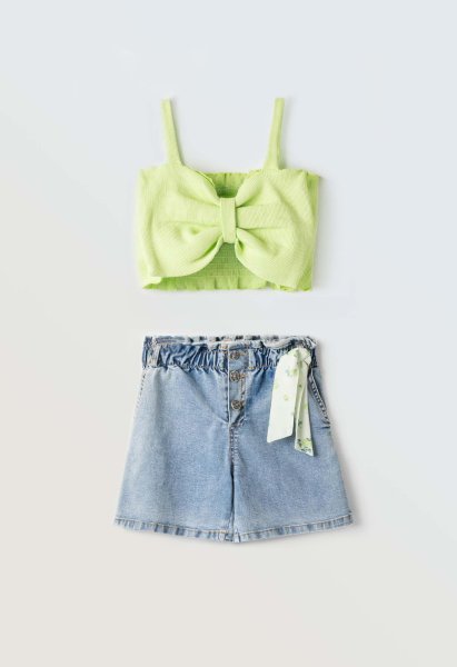 Παιδικό σετ σορτς ΕΒΙΤΑ για κορίτσι από 6 έως 16 ετών. Μπλούζα σε λαχανί χρώμα και μπλε τζιν σορτς.