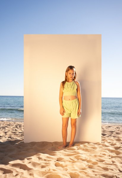 Παιδικό σετ σορτς ΕΒΙΤΑ για κορίτσι από 6 έως 16 ετών σε λαχανί χρώμα.