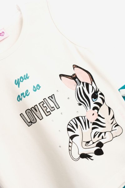 Παιδικό σετ σορτς for Funky Kids για κορίτσι από 2 έως 6 ετών. Αμάνικη μπλούζα σε χρώμα εκρού με τύπωμα και σορτς σε tropical green χρώμα με λάστιχο στη μέση.