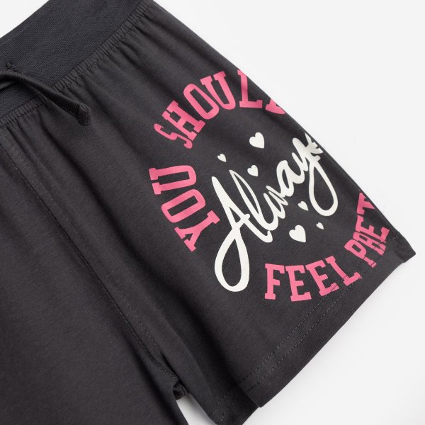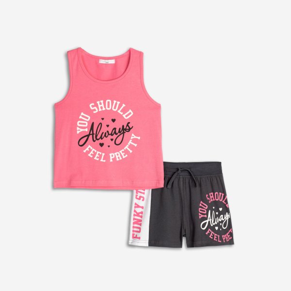 Παιδικό σετ σορτς for Funky Kids για κορίτσι από 6 έως 16 ετών. Μπλούζα σε ροζ χρώμα με τύπωμα και ανθρακί-λευκό σορτς.