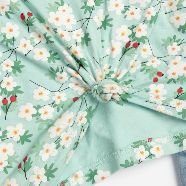 Παιδικό σετ τζιν σορτς for Funky Kids για κορίτσι από 6 έως 16 ετών. Μπλούζα σε βεραμάν χρώμα με allover τύπωμα και μπλε τζιν σορτς.