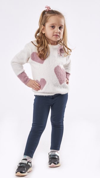 Παιδικό πουλόβερ Εβίτα για κορίτσι από 1 έως 6 ετών σε εκρού χρώμα με ροζ καρδιές.