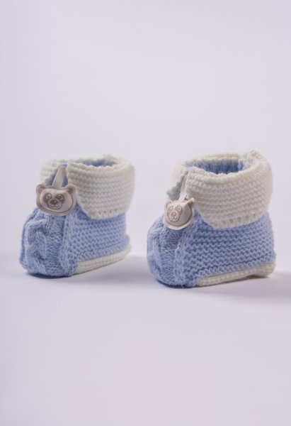 Πλεκτά παπουτσάκια για νεογέννητο Hashtag Mini σε γαλάζιο χρώμα.