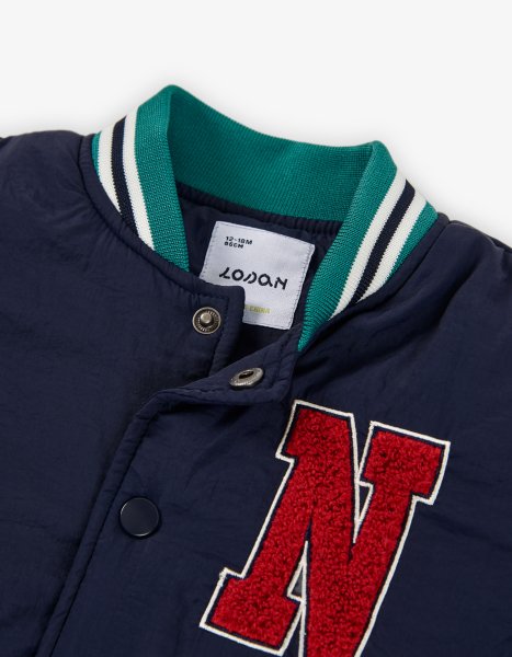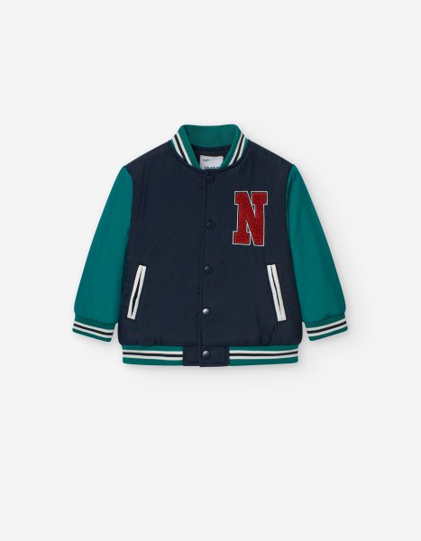 Βρεφικό μπουφάν bomber κολεγιακό LOSAN για αγόρι από 6 έως 36 μηνών σε μπλε-πράσινο χρώμα.