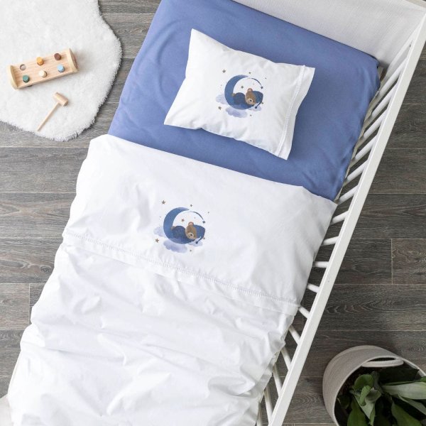 Κουβερτα κούνιας, πολυεστερική, super soft, 100% πολυέστερ, εμπριμέ, σε χρώμα μπλε, σχέδιο sleeping bear. Διατίθεται σε συσκευασία δώρου (κουτί).