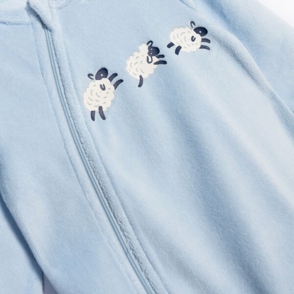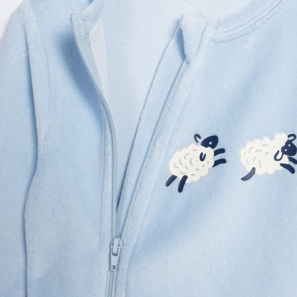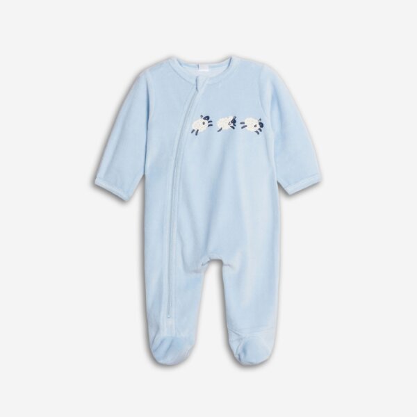 Βρεφικό φορμάκι for Funky kids για αγόρι από 1 έως 9 μηνών βελουτέ σε γαλάζιο χρώμα.