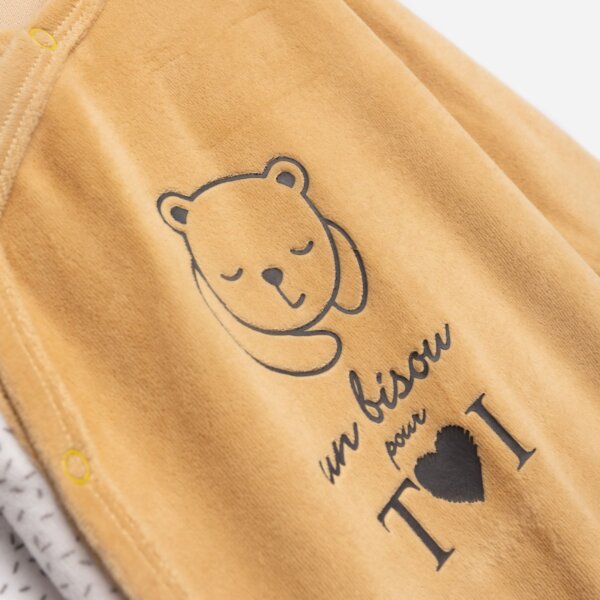 Βρεφικό φορμάκι for Funky kids για αγόρι από 1 έως 9 μηνών βελουτέ με τύπωμα σε μουσταρδί χρώμα.