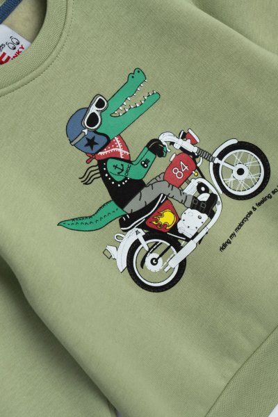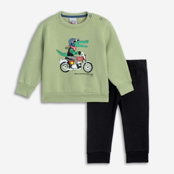 Παιδικό σετ φόρμας for Funky Kids για αγόρι από 6 έως 24 μηνών σε πράσινο χρώμα με τύπωμα και παντελόνι σε μαύρο χρώμα.