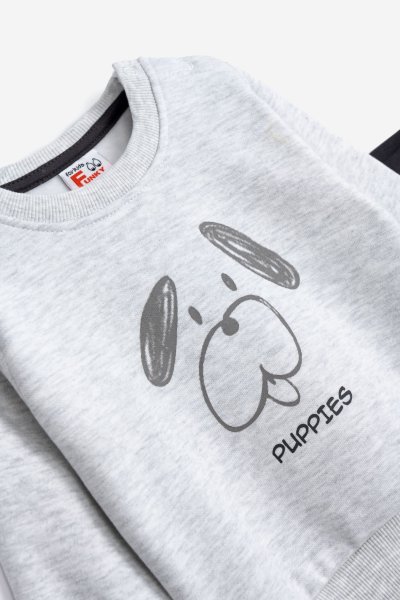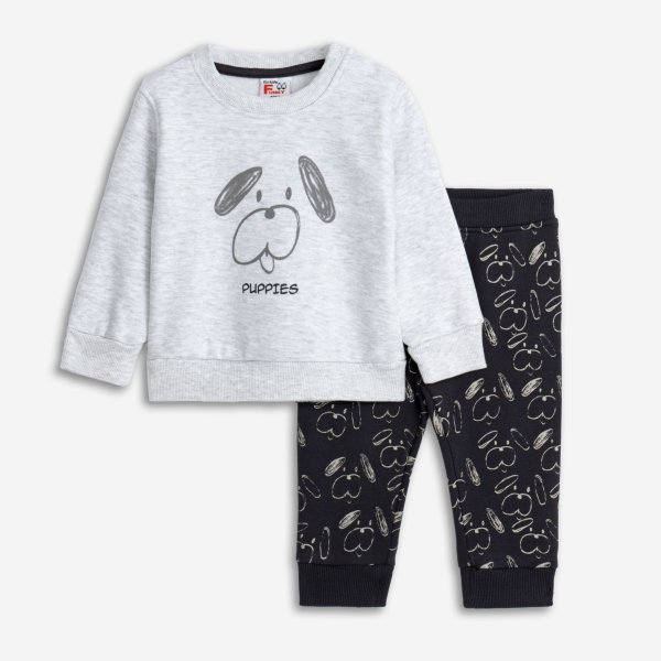 Παιδικό σετ φόρμας for Funky Kids για αγόρι από 6 έως 24 μηνών σε γκρι χρώμα με τύπωμα και παντελόνι σε μαύρο χρώμα με allover τύπωμα.