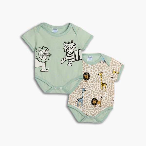 Βρεφικό σετ 2 τμχ κορμάκια for Funky kids για αγόρι από 1 έως 12 μηνών σε χρώμα φυστικί και εκρού.