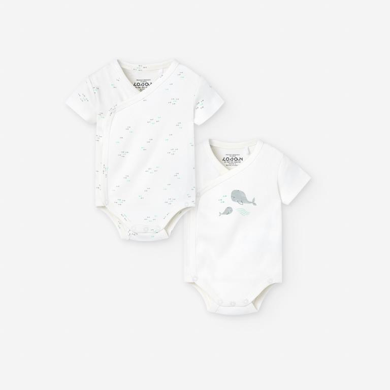Βρεφικό σετ κορμάκια 2τμχ Losan για αγόρι από 0 έως 6 μηνών σε εκρού χρώμα με τύπωμα.