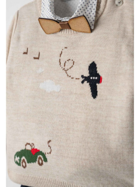 Βρεφικό σετ 3τμχ Hashtag για αγόρι από 6 έως 24 μηνών. Πουλόβερ σε μπεζ χρώμα, λευκό πουκάμισο και μαύρο παντελόνι.