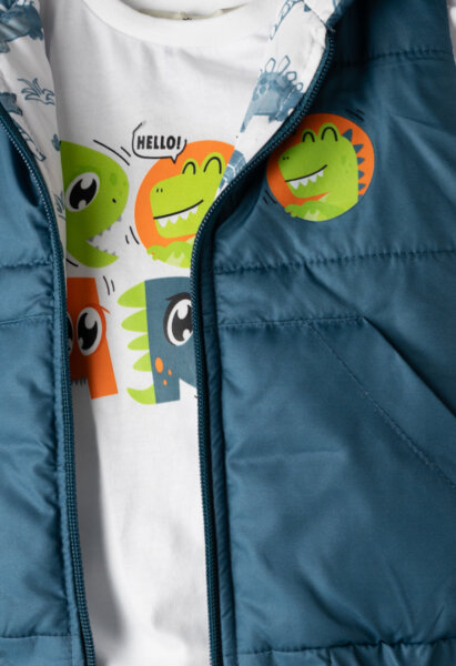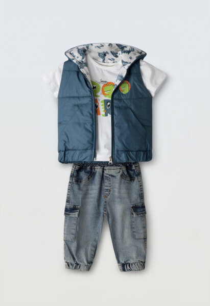 Βρεφικό σετ 3τμχ Hashtag για αγόρι από 6 έως 24 μηνών. Αμάνικο μπουφάν σε μπλε χρώμα, μπλούζα σε λευκό χρώμα και τζιν μπλε παντελόνι.
