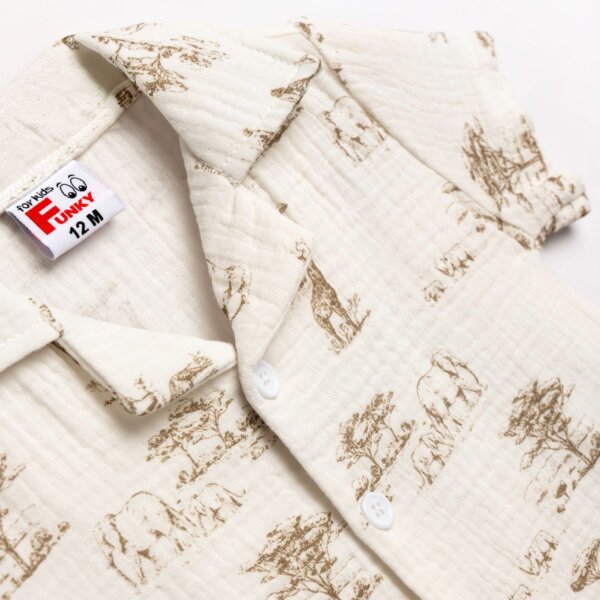 Βρεφικό σετ 3τμχ for Funky Kids για αγόρι από 6 έως 24 μηνών. Πουκάμισο σε μπεζ χρώμα, λευκή μπλούζα και μπεζ βερμούδα.