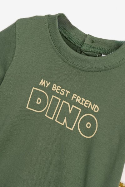 Βρεφικό σετ βερμούδα for Funky Kids για αγόρι από 6 έως 24 μηνών. Μπλούζα σε χακί χρώμα με τύπωμα, βερμούδα σε χρώμα βανίλια με ολόσωμο τύπωμα.