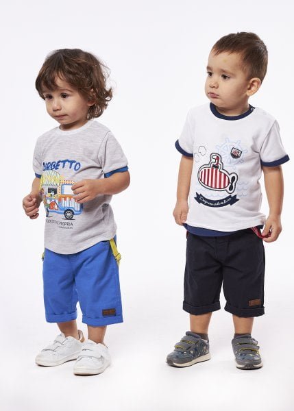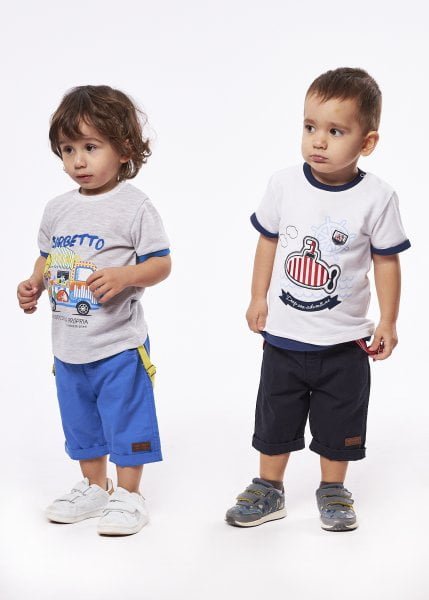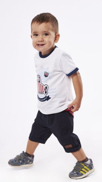 Βρεφικό σετ βερμούδα HASHTAG για αγόρι από 6 έως 24 μηνών. Μπλούζα σε λευκό χρώμα με τύπωμα και βερμούδα σε μπλε σκούρο.