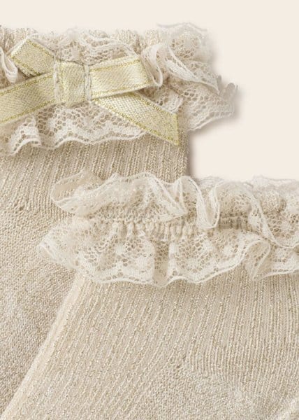 Βρεφικό καλτσάκι με φιόγκο Mayoral Newborn για Νεογέννητο κορίτσι από 0 έως 18 Μηνών σε ανοιχτό καφέ χρώμα.