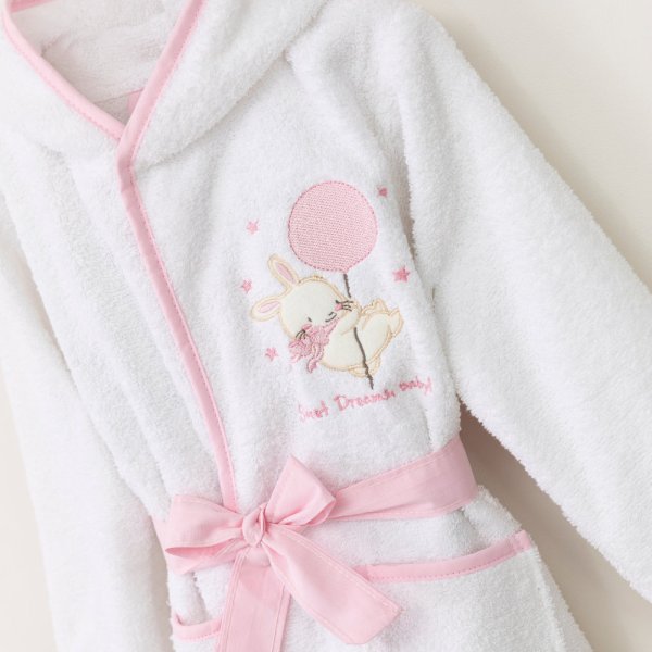 Παιδικό Μπουρνούζι Borea Sweet Dreams για κορίτσι 1-4 ετών Λευκό-Ροζ
