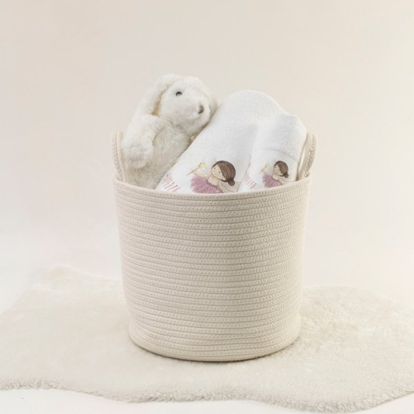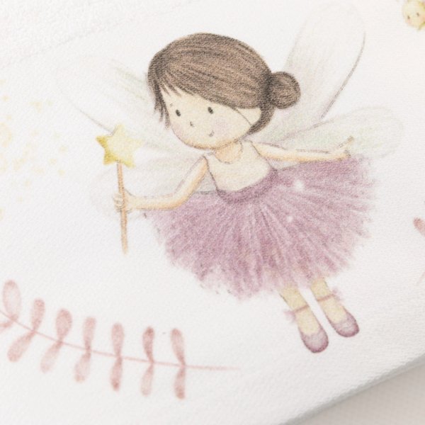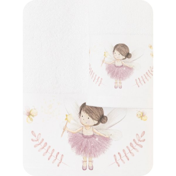 Σετ πετσέτες 2 τεμαχίων, μπάνιου και χειρός, από ύφασμα φροτέ πενιέ, 100% βαμβακερό, μονόχρωμο, λευκό, με ψηφιακή εκτύπωση, σχέδιο νεραϊδούλα.