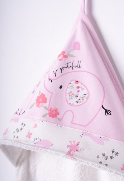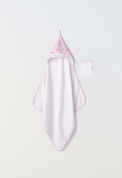Βρεφική πετσέτα-μπουρνούζι Εβίτα σε ροζ χρώμα μαζί με γαντάκι μπάνιου.
