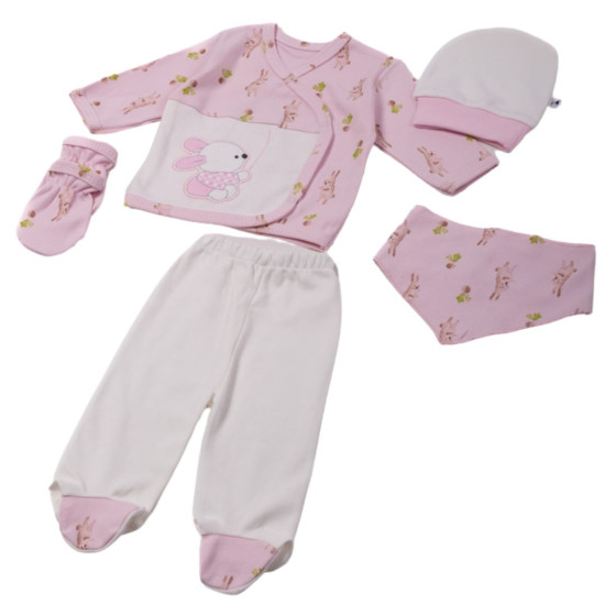 Βρεφικό σετ δώρου 5τμχ EBITA Mini που περιλαμβάνει ένα σετάκι πυτζαμούλες, σκουφί, σαλιάρα, γαντάκια σε ροζ χρώμα.