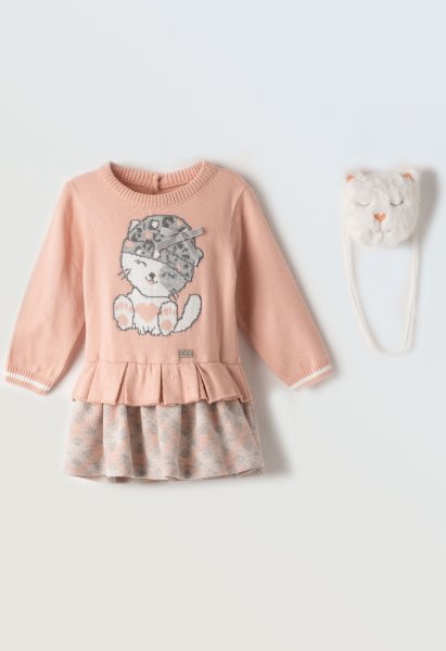 Βρεφικό φόρεμα ΕΒΙΤΑ για κορίτσι από 6-24 μηνών σε ροζ με γκρι χρώμα.