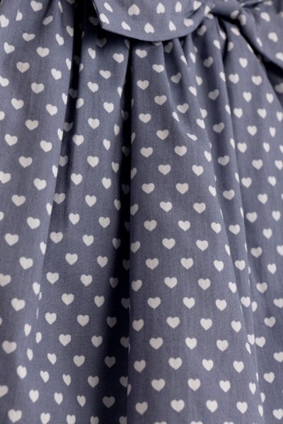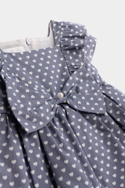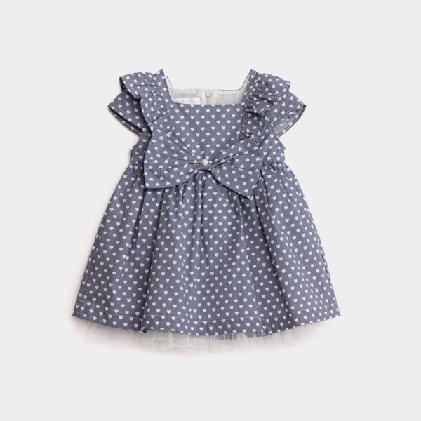 Βρεφικό φόρεμα ποπλίνα for Funky Kids για κορίτσι από 6 έως 24 μηνών σε χρώμα μπλε με πουά καρδούλες, βολάν μανίκια και διακοσμητικό φιόγκο στο πίσω μέρος.