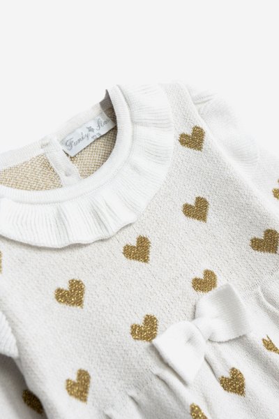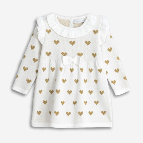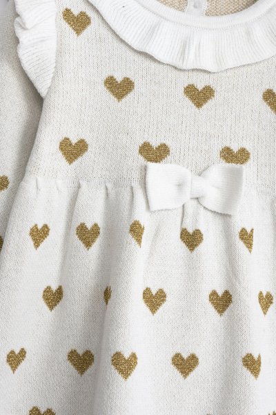 Βρεφικό φόρεμα πλεκτό for Funky Kids για κορίτσι από 6 έως 24 μηνών σε εκρού χρώμα με allover χρυσαφί τύπωμα.