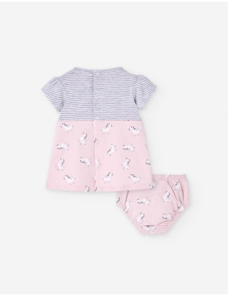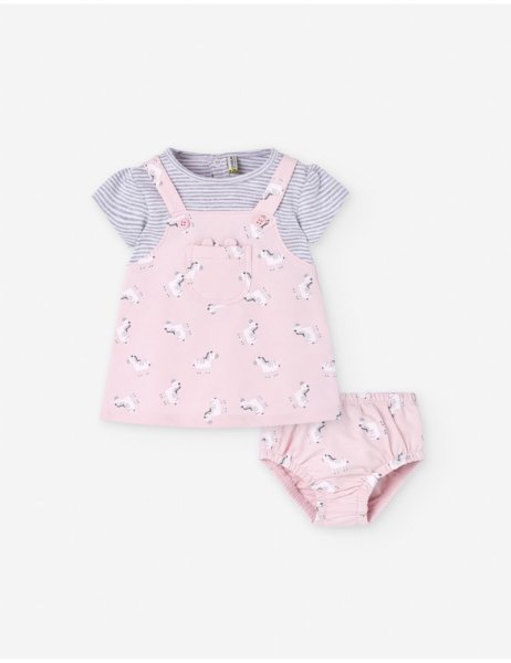 Βρεφικό φόρεμα Losan για κορίτσι από 0 έως 6 μηνών σε ροζ χρώμα με τύπωμα και κάλυμμα πάνας.