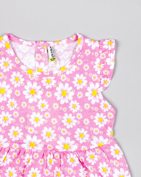 Βρεφικό φόρεμα Losan για κορίτσι από 3 έως 24 μηνών σε ροζ χρώμα με ολόσωμο τύπωμα.