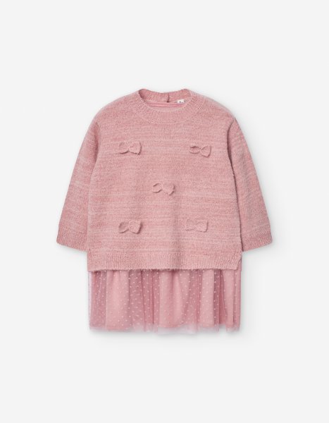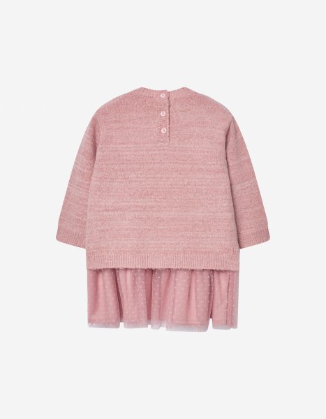 Βρεφικό πλεκτό φόρεμα με τούλι LOSAN για κορίτσι από 6 έως 36 μηνών σε ροζ χρώμα.