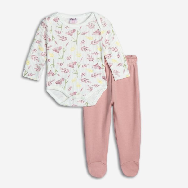 Βρεφικό Σετ Κορμάκι for Funky kids για κορίτσι από 1 έως 12 μηνών σε χρώμα εκρού με τύπωμα και ροζ παντελόνι.