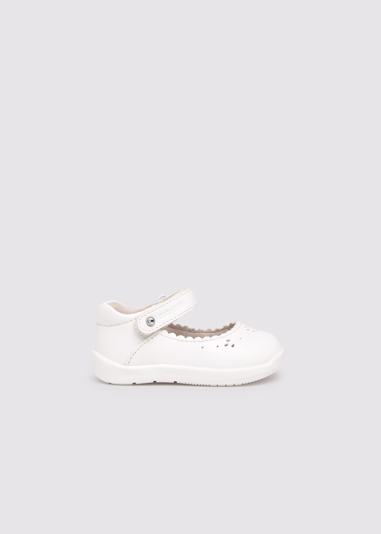Βρεφικές μπαλαρίνες δέρμα Mayoral για κορίτσι σε λευκό χρώμα με διάτρητο σχέδιο.