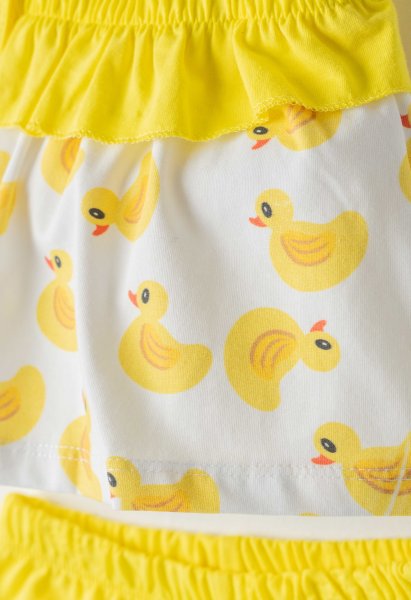 Βρεφικό σετ σορτς EBITA για κορίτσι από 6 έως 24 μηνών. Μπλούζα σε λευκό-κίτρινο χρώμα με allover τύπωμα και κίτρινο σορτς.