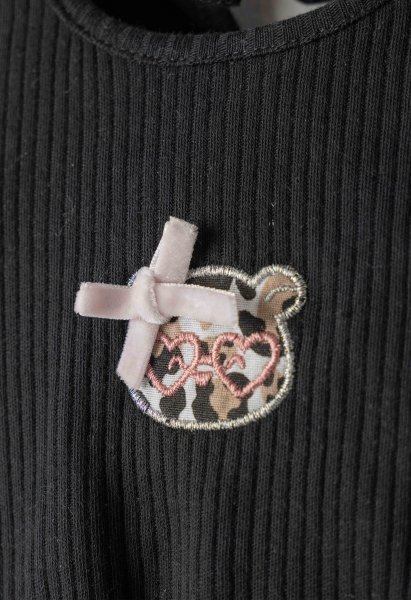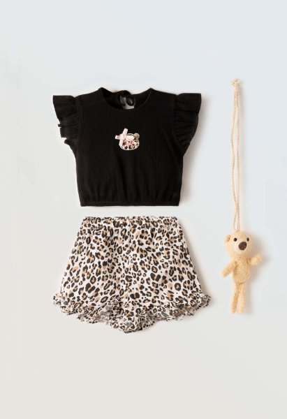 Βρεφικό σετ σορτς EBITA για κορίτσι από 6 έως 24 μηνών. Μπλούζα σε μαύρο χρώμα και μπεζ σορτς με allover λεοπάρ τύπωμα.