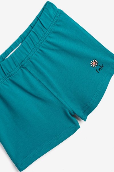 Βρεφικό σετ σορτς for Funky Kids για κορίτσι από 6 έως 24 μηνών. Αμάνικη μπλούζα σε ροζ-σομόν χρώμα με τύπωμα, σορτς σε μπλε απόχρωση.